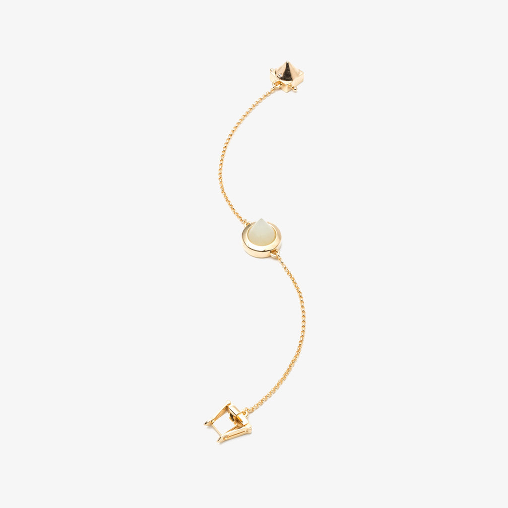 THE SINGLE CONE BRACELET, finished IN 12 KARAT GOLD, IS CREATED FROM A SINGLE, BEZEL SET CONE SHAPE CUT FROM RARE JADE AND DELICATE CABLE LINK CHAIN. CRAFTED ENTIRELY BY HAND, THIS BRACELET IS MEANT TO BE WORN AS AN EVERYDAY KEEPSAKE. SECURE WITH A BOX CLOSURE AND SAFETY LATCH.