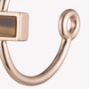 The Baguette Hoop Earring is a classic hoop earring, inspired by heritage hardware. A hand carved, bezel set Tiger Eye crossbar punctuates each hoop, ending in a rounded ring. Secure with a custom Eddie Borgo earring backing. surgical steel posts, for pierced ears. Shown here finished in 12 Karat Gold.