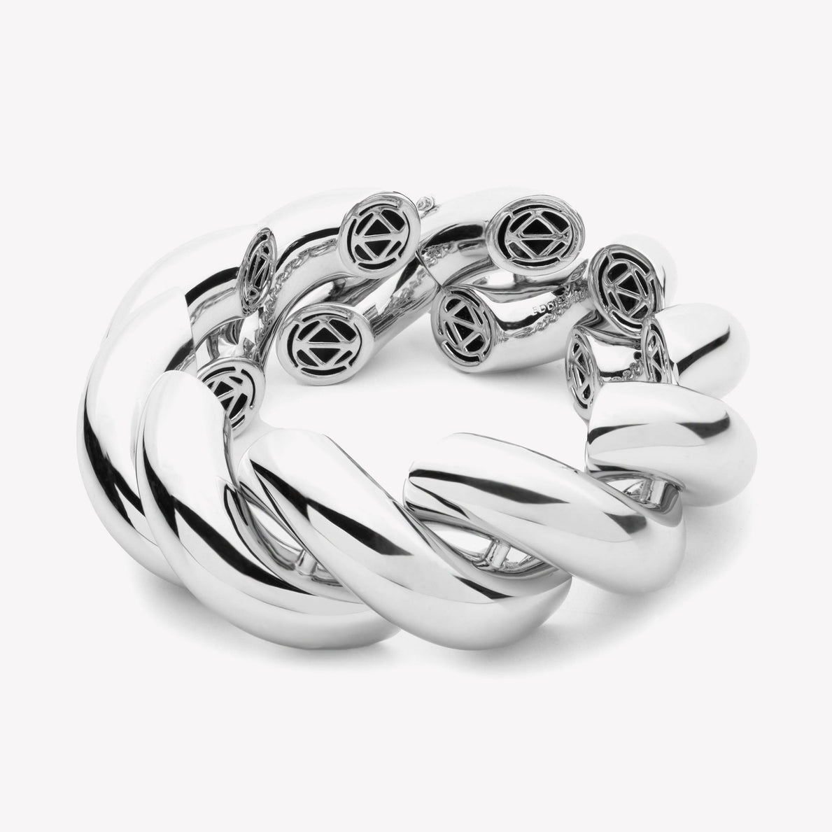 The Large Torsade Bracelet, finished in Silver, is composed of nine oversized, polished San Marco links; each station is pinned together by hand to create our signature fluidity and movement. Close with a custom Eddie Borgo box closure, secures with a double safety latch.
