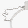 The Division Choker, finished in silver, is a lightweight choker necklace that has been designed as an update of our classic Safety Chain Choker. This unique piece has been created in two parts, to feature a thin single band beside a layer of two stacked thin bands; punctuated by three peaked bars detailed with three faceted baguette crystals.