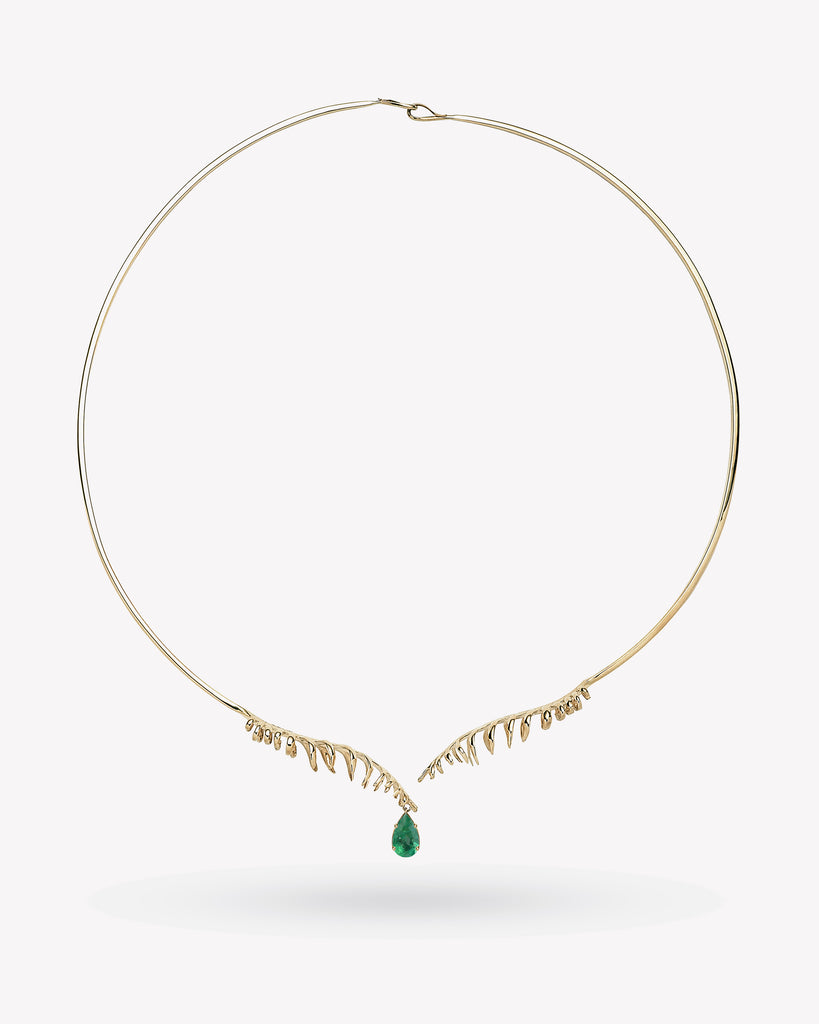 the creation of each piece is done entirely by hand, each delicate frond begins as a flat object, each leaf then carefully formed to establish life and movement. as a result, no two pieces are the same, each frond sculpted into a unique object in and of itself, each rare diamond the only of its kind.