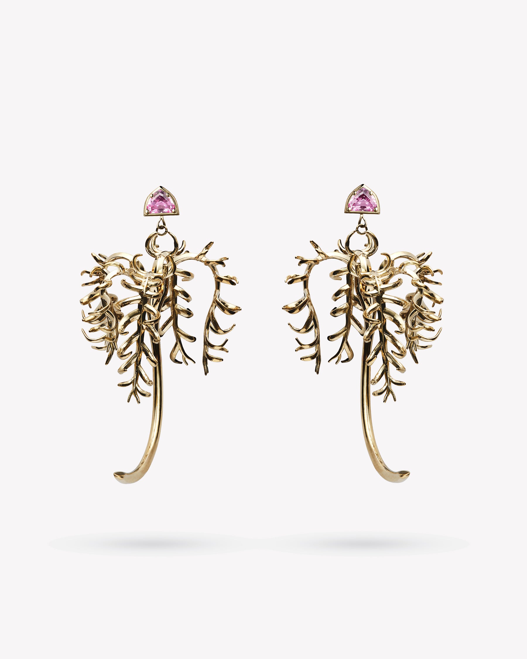 the creation of each piece is done entirely by hand, each delicate frond begins as a flat object, each leaf then carefully formed to establish life and movement. as a result, no two pieces are the same, each frond sculpted into a unique object in and of itself, each rare stone the only of its kind.
