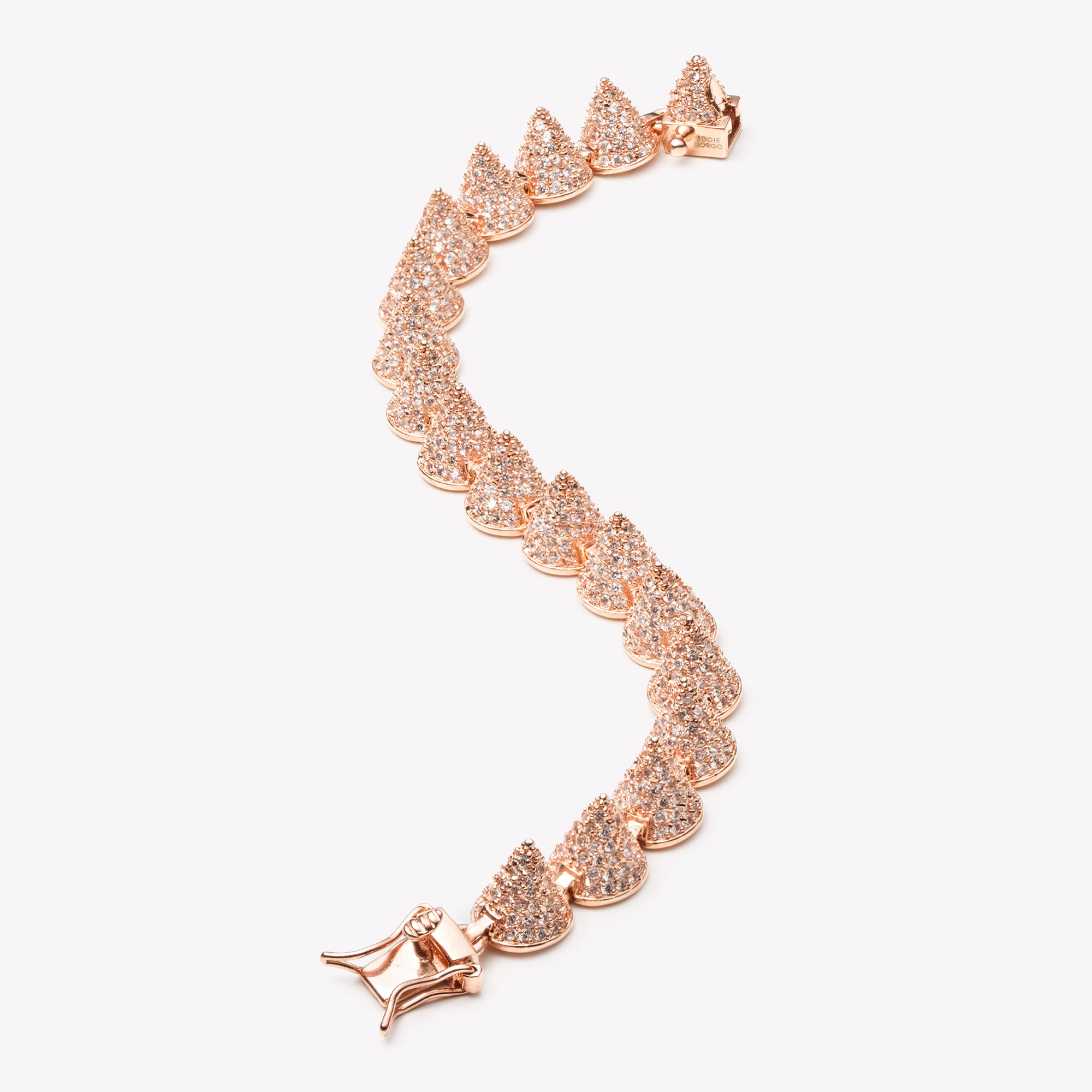 THE PAVÉ CONE BRACELET, finished IN 12 KARAT ROSE GOLD, IS OUR SIGNATURE CONE BRACELET, COMPOSED OF DELICATE CONICAL SHAPES JOINED TOGETHER BY HAND WITH INDIVIDUAL HINGES AND PRONG SET WITH PAVÉ CRYSTAL. A SIGNATURE EDDIE BORGO PIECE, WEAR THE PAVÉ CONE BRACELET ALONE OR ALONGSIDE YOUR OTHER EDDIE BORGO BRACELETS. CLOSE WITH A BOX AND TOUNGE CLASP AND SECURE WITH TWO SAFETY LATCHES.