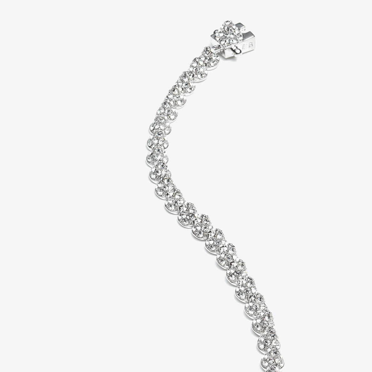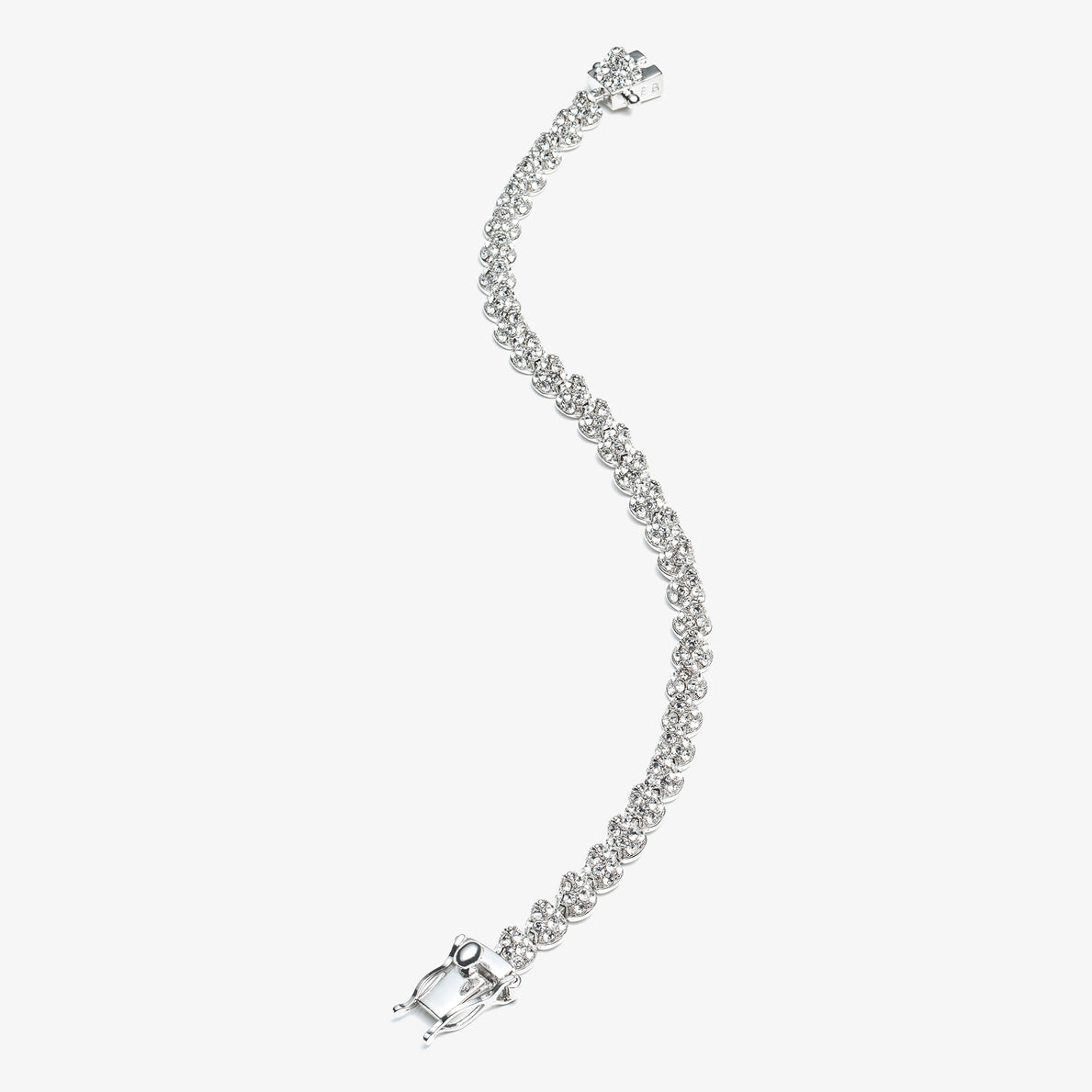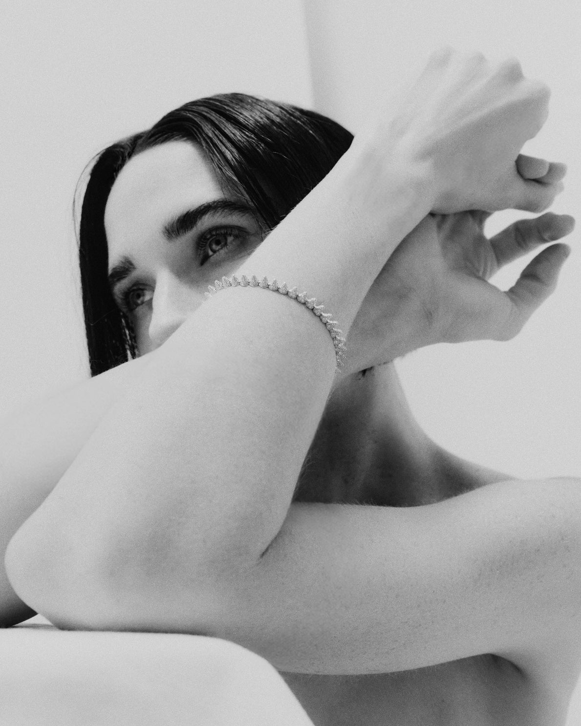The Pavé Cone Tennis Bracelet, finished in Silver, is our signature tennis bracelet, composed of delicate conical shapes joined together by hand with individual hinges and prong set with pavé crystal. A signature Eddie Borgo piece, wear the cone tennis bracelet alone or alongside your other cone bracelets. Close with a box and tongue clasp and secure with two safety latches.