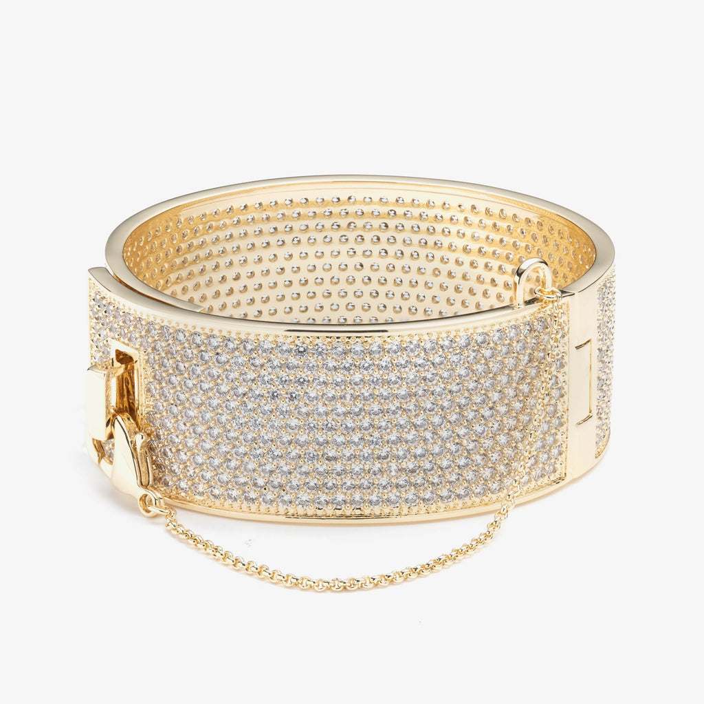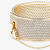 The Pavé Safety Chain Cuff, finished in 12 Karat Gold and set with hand cut pavé crystal. This unique Eddie Borgo bracelet is one of our most coveted pieces.Secure the bracelet by attaching the safety chain closure. This signature bracelet can be worn with the chain draping down either the front or the back of the wrist.