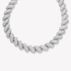 The Pavé Torsade Necklace, finished in silver, has been composed of polished San Marco links; each station is pinned together by hand to create our signature fluidity and movement. The entire piece has been hand set in pavé crystal, and a caged interior created for weightlessness and comfort. Close with a custom Eddie Borgo box closure, secures with a double safety latch.