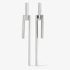 The Peaked Mobile Earrings, finished IN SILVER, HAVE BEEN CREATED WITH THREE HAND FACETED BARS, PINNED TOGETHER TO CREATE A MOVING MOBILE DROP EARRING. THESE MINIMAL, SCULPTURAL EARRINGS ARE A PERFECT ALTERNATIVE FOR EVENING.