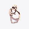 The Chain Latch Ring, finished in 12 Karat Gold, is a classic Gold ring, inspired by vintage hardware finishings. Created by hand, a rounded bar has been formed into the ring, ending in two rounded loops and attached to a delicate curb chain by a custom latch. The chain drapes over the top of the finger when wearing.