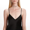 The Twill Choker, finished in Silver, has been created with hand pinned angular baguette bars, designed to resemble a twill weave. This slim style is adjustable to fit without feeling restrictive. Try layering with fine chains. Adjustable custom clip closure.