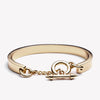 The Zenith Cuff, finished in 12 Karat Gold, is a classic cuff bracelet that easily slips onto the wrist and can be worn with the custom toggle closure featured in either the back or the front of the wrist.